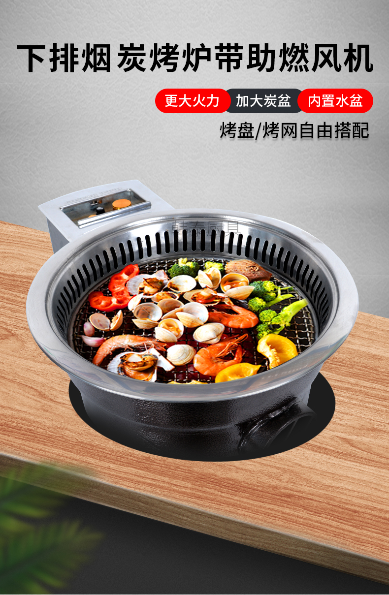• 产品名称:下排烟炭烤炉带助燃风机